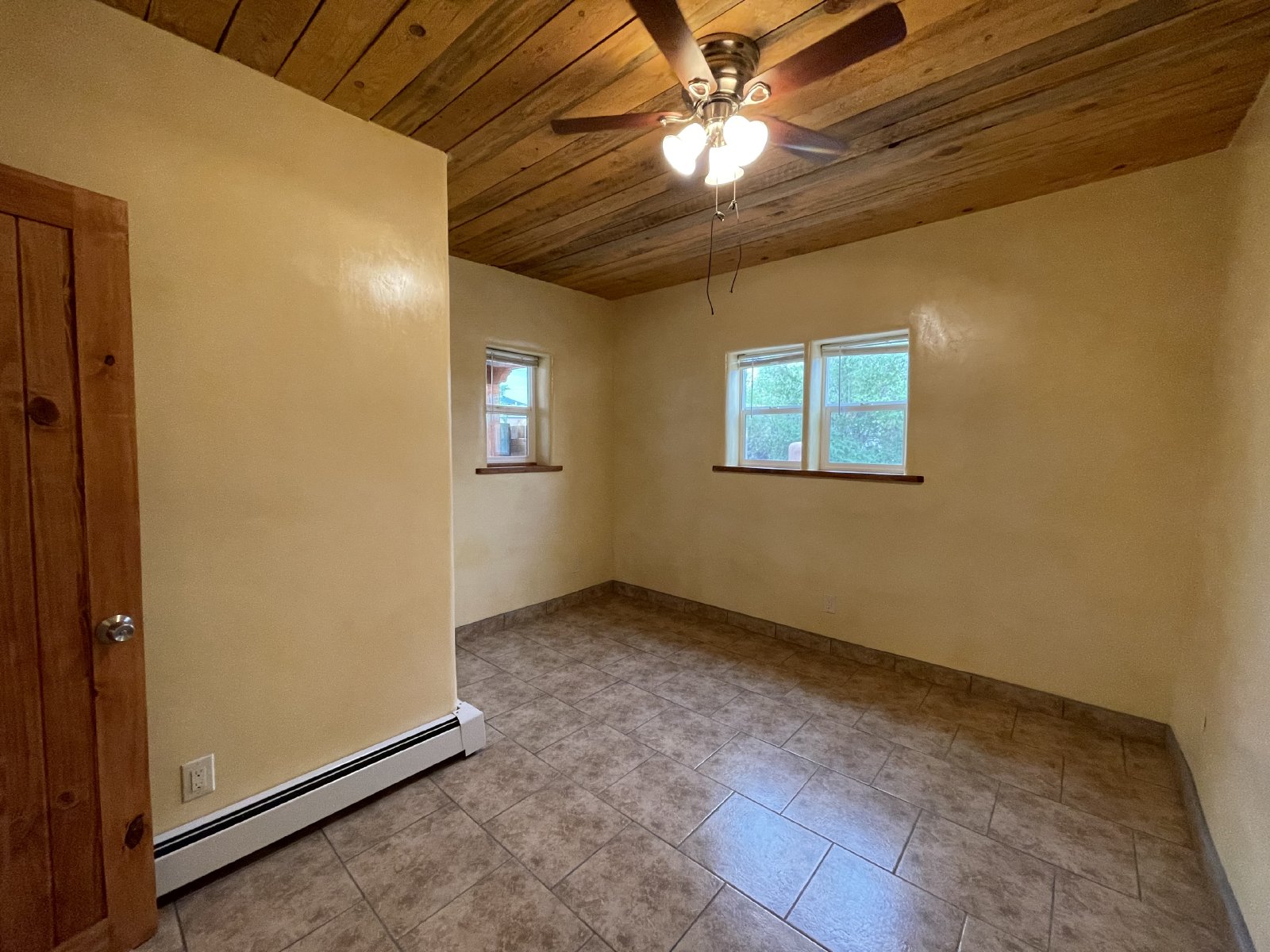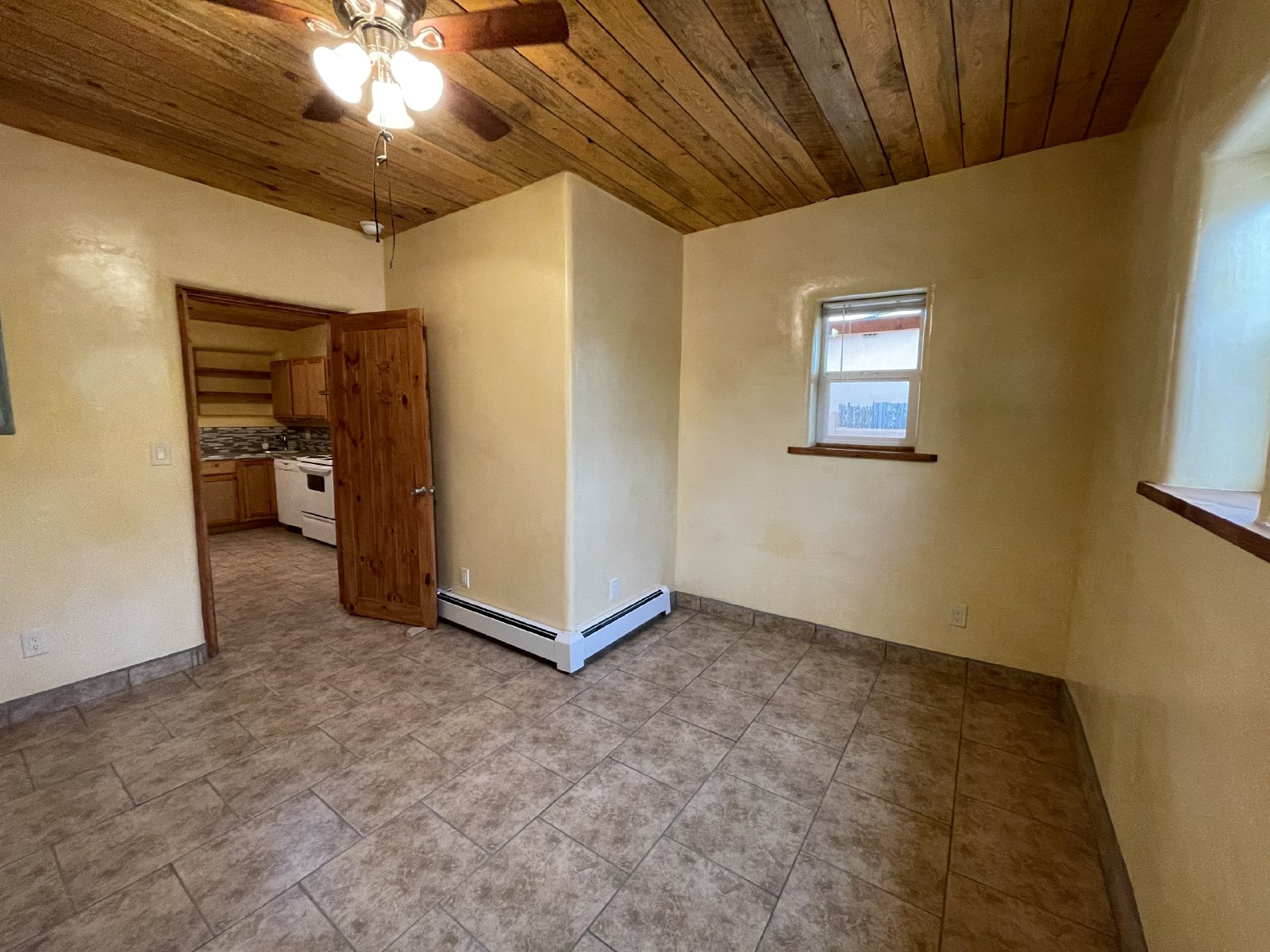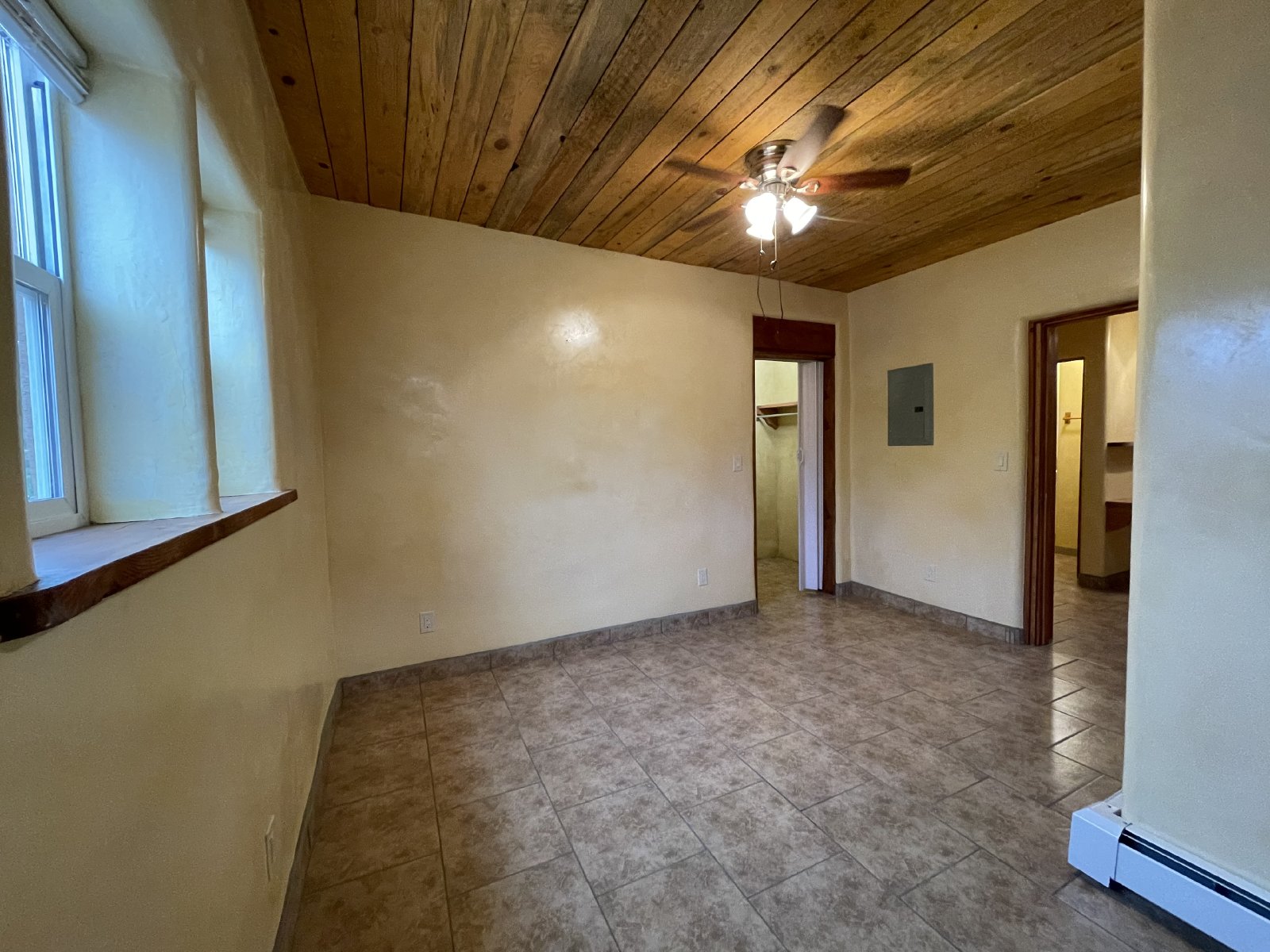 Step inside to discover a well-designed space boasting tile flooring throughout, which complements the traditional plaster walls, adding a touch of Santa Fe's unique architectural style. The studio is equipped with ceiling fans and a hot water baseboard heating system to ensure a comfortable living environment regardless of the season.
