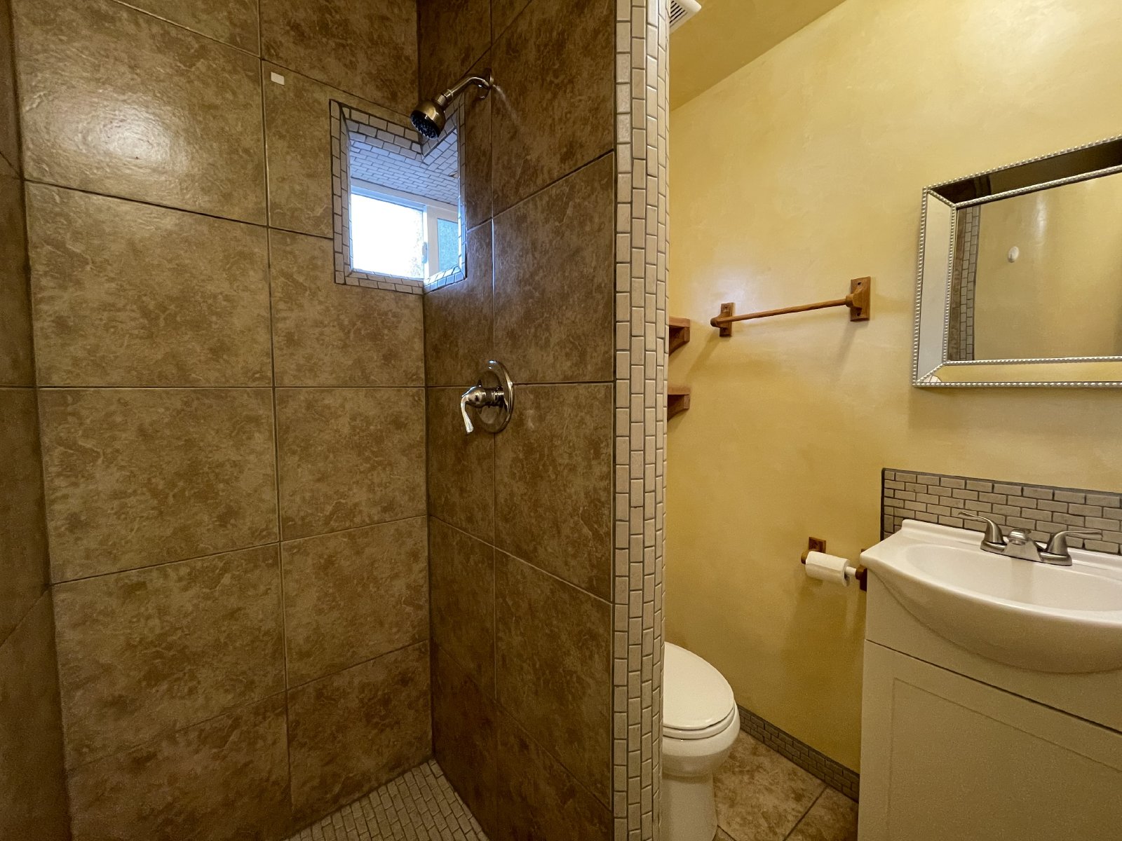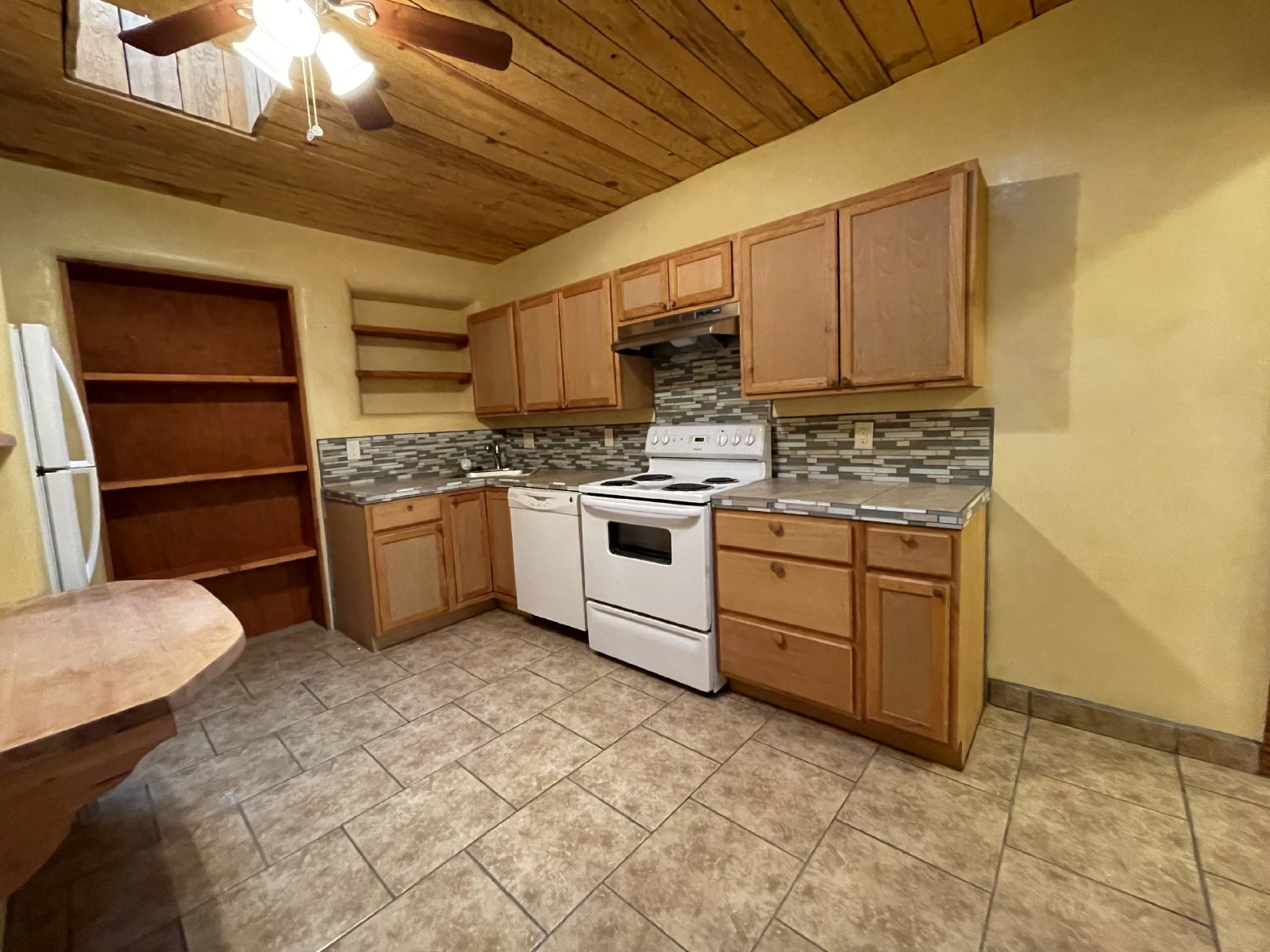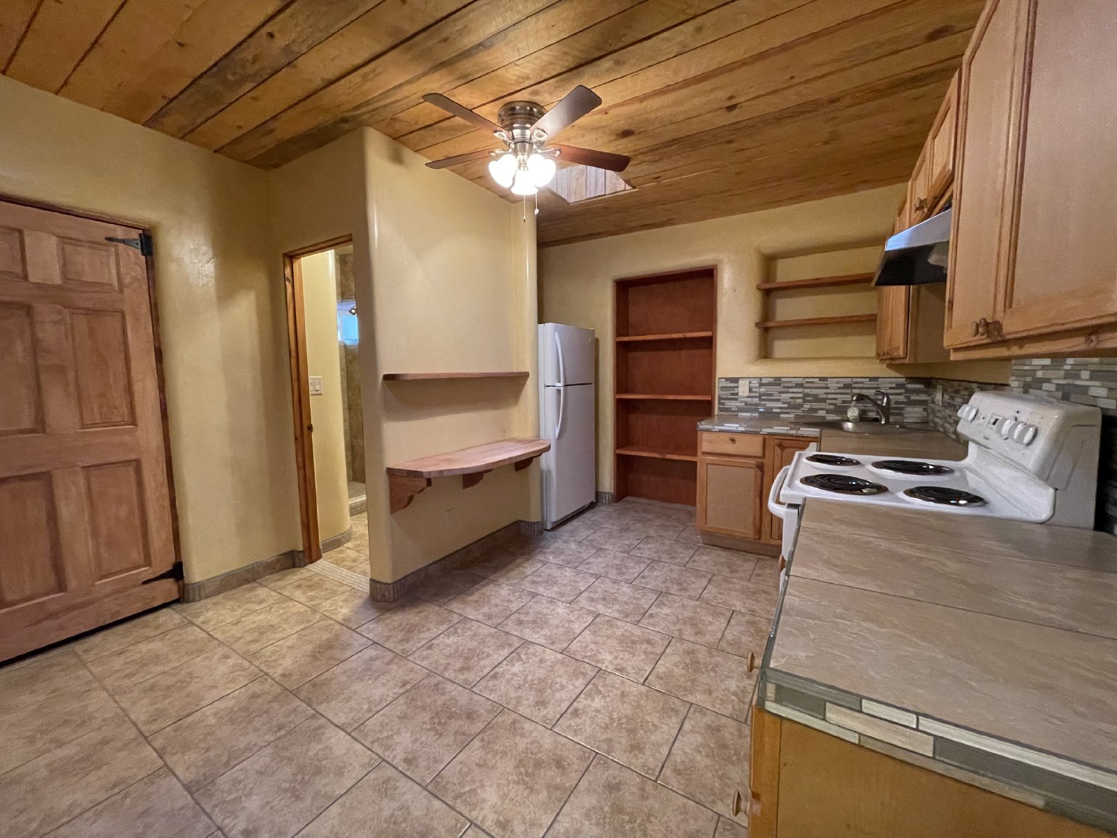 Step inside to discover a well-designed space boasting tile flooring throughout, which complements the traditional plaster walls, adding a touch of Santa Fe's unique architectural style. The studio is equipped with ceiling fans and a hot water baseboard heating system to ensure a comfortable living environment regardless of the season.
