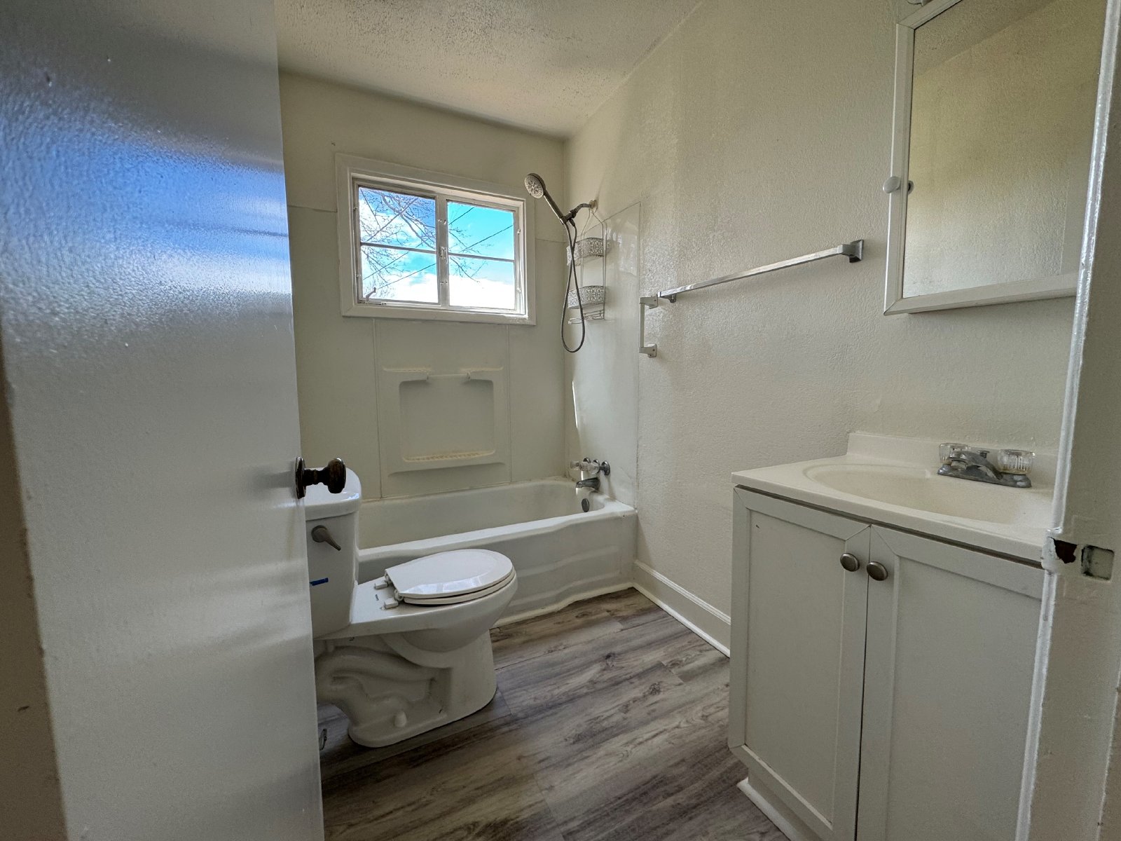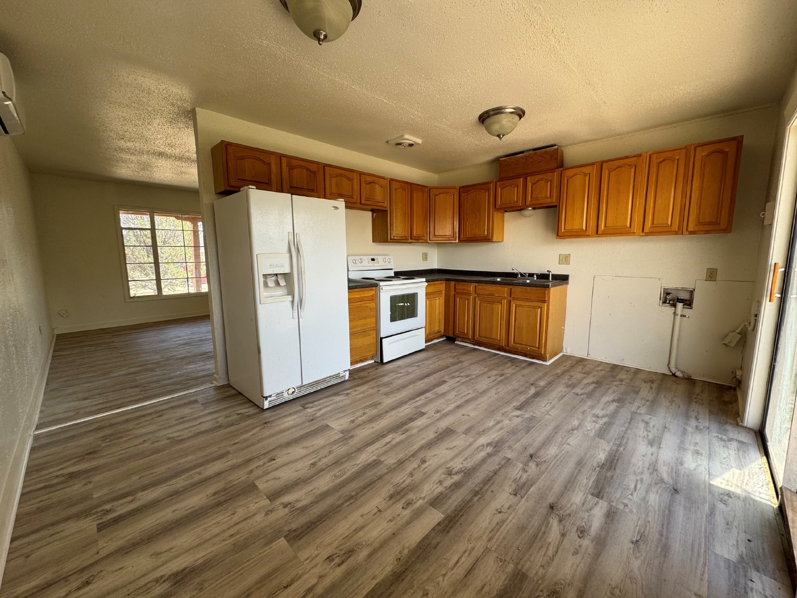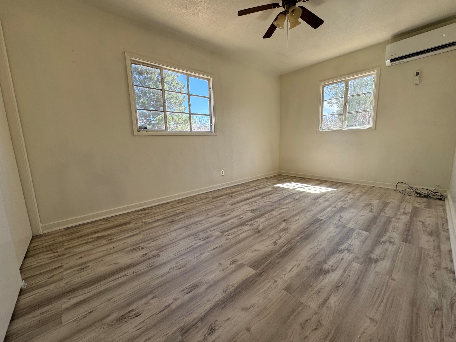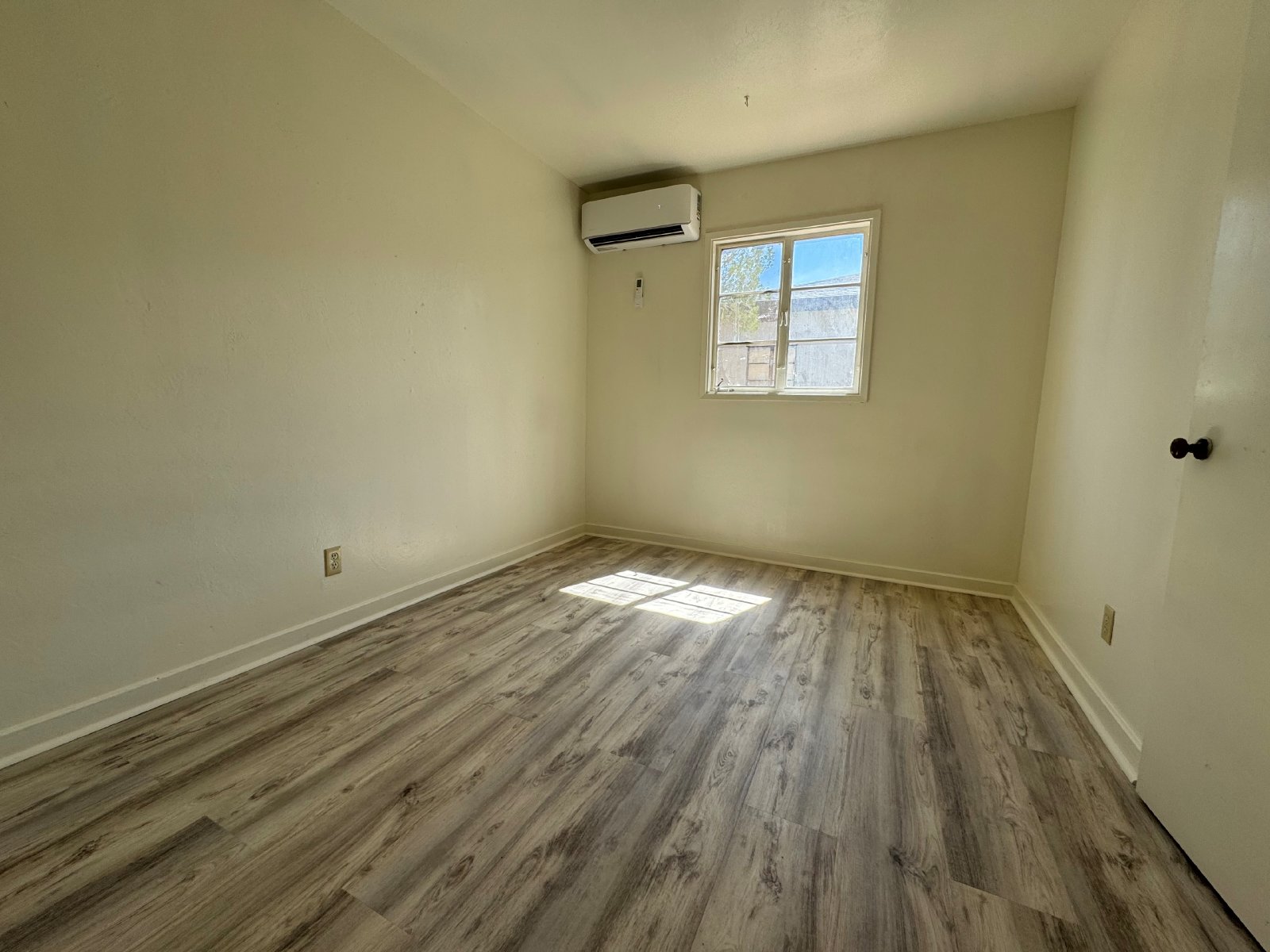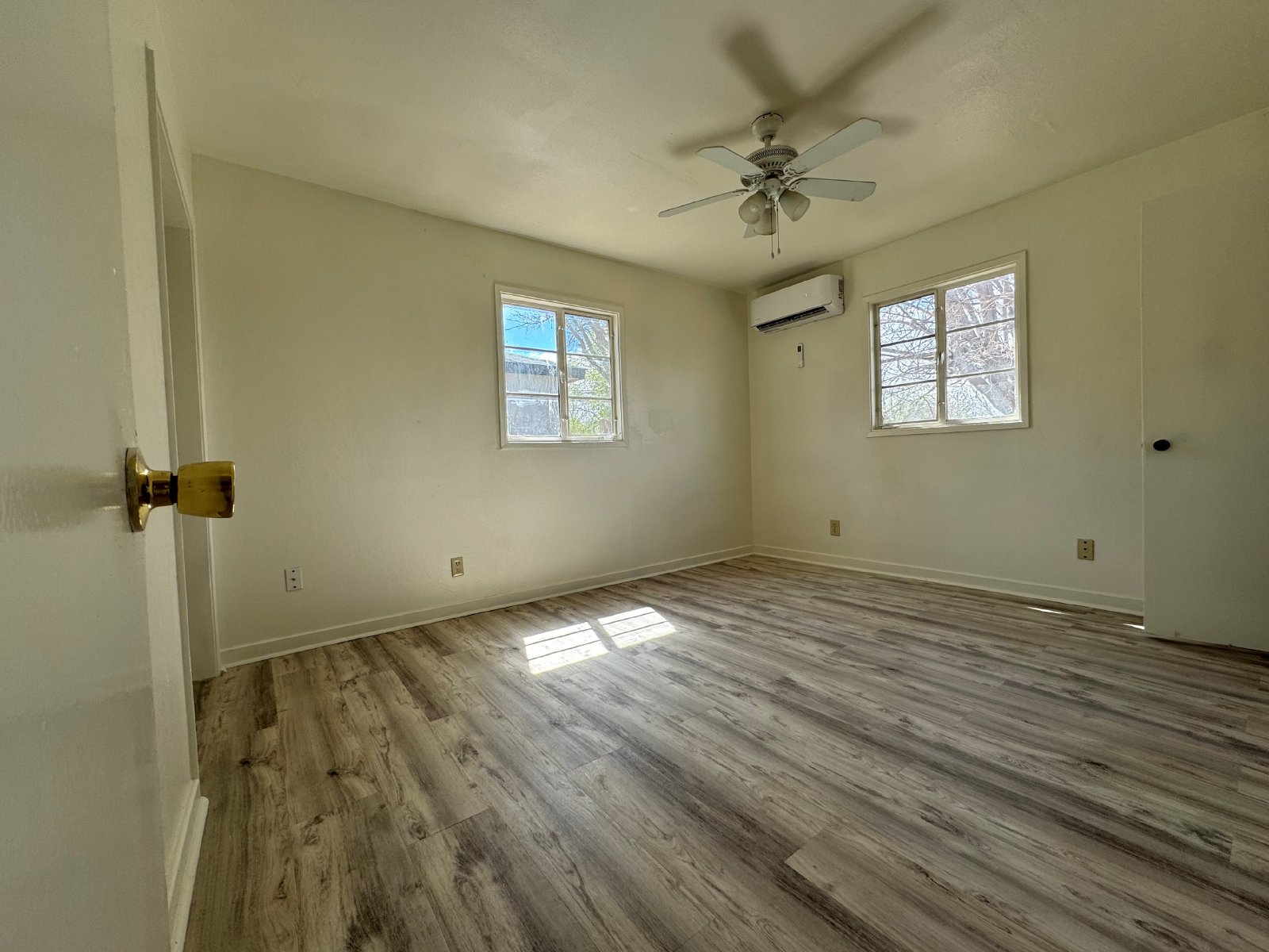 This beautiful corner house is 1,128 square feet, has 3 bedrooms and 1.5 bathrooms. Rent is $1200.00 a month with a deposit of $1200.00 and a 12- month lease agreement. New wood vinyl flooring throughout home and new paint. Has large Fenced Back Yard and one care garage. Gas Forced Heat with Evaporative Cooling. NO PET or HUD. ADA Assistive Animals. Only All utilities paid by tenant. Appliances included are an electric Stove/Range and Refrigerator