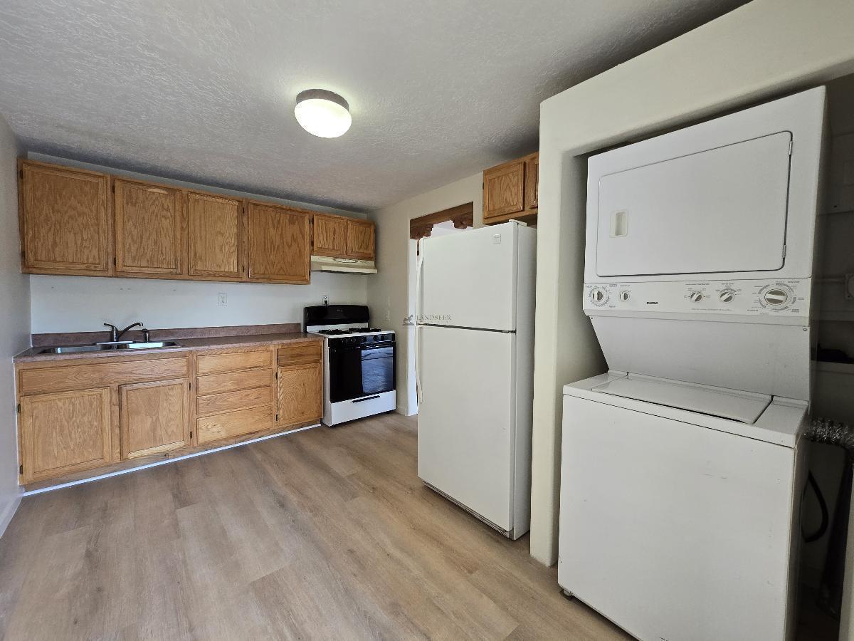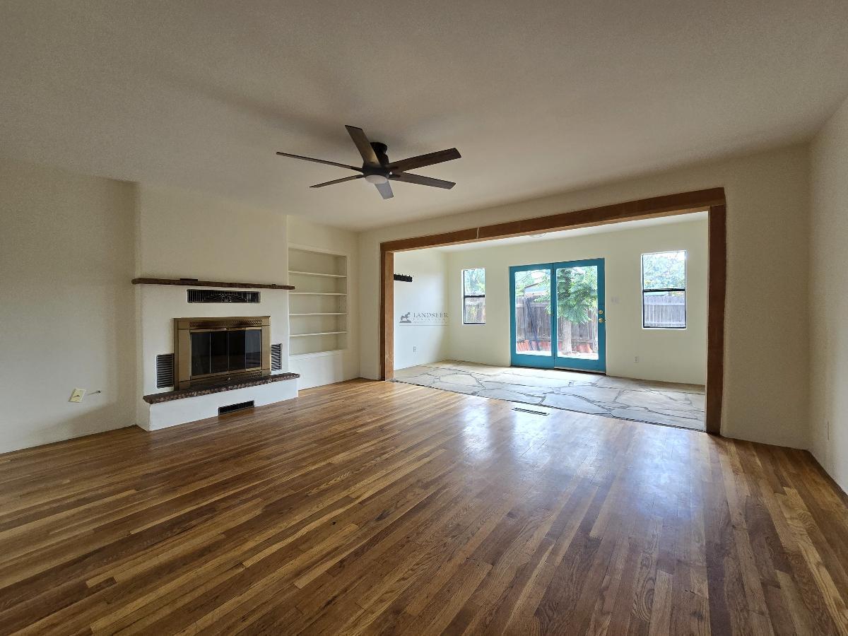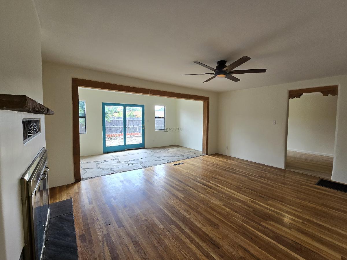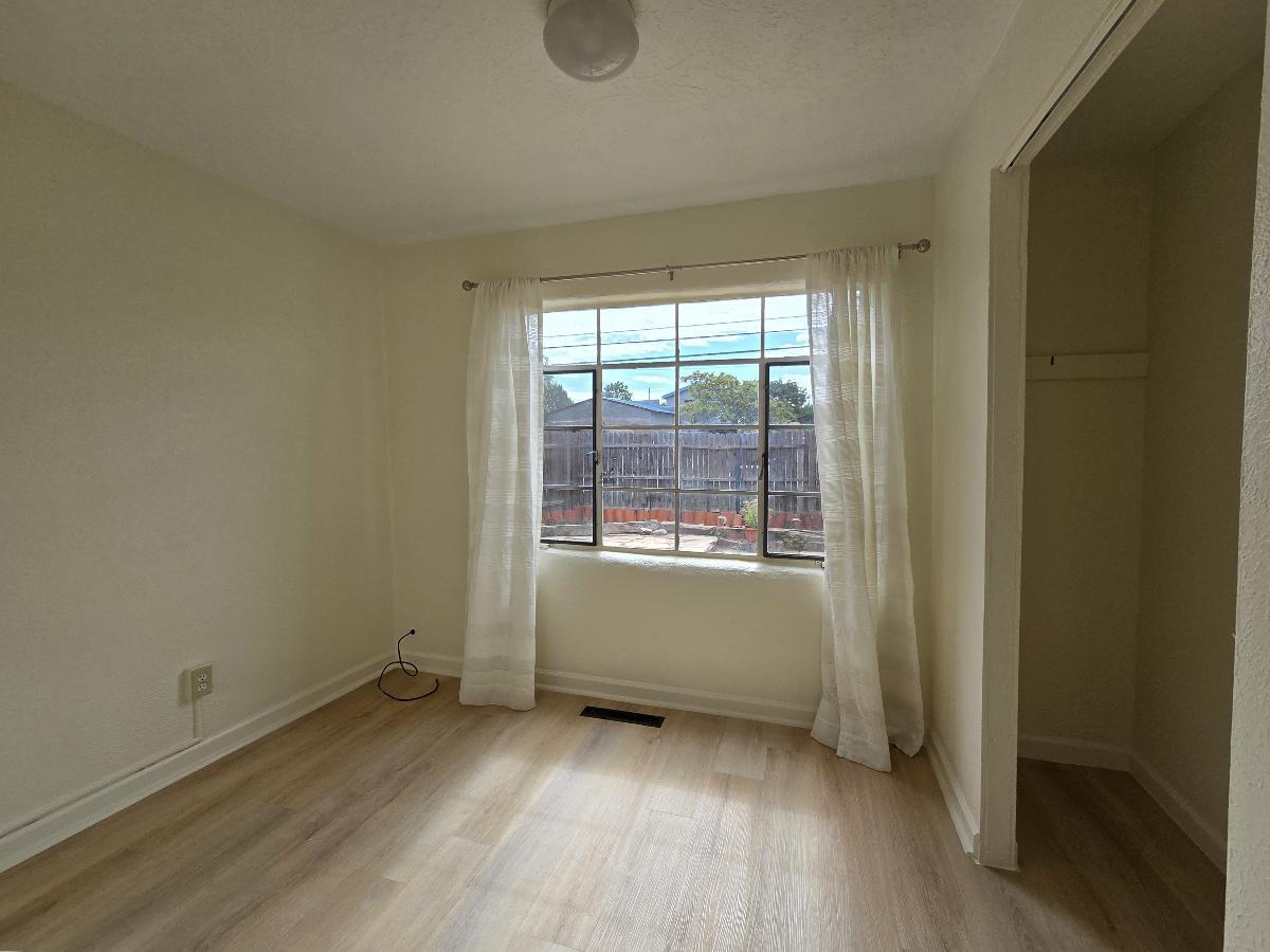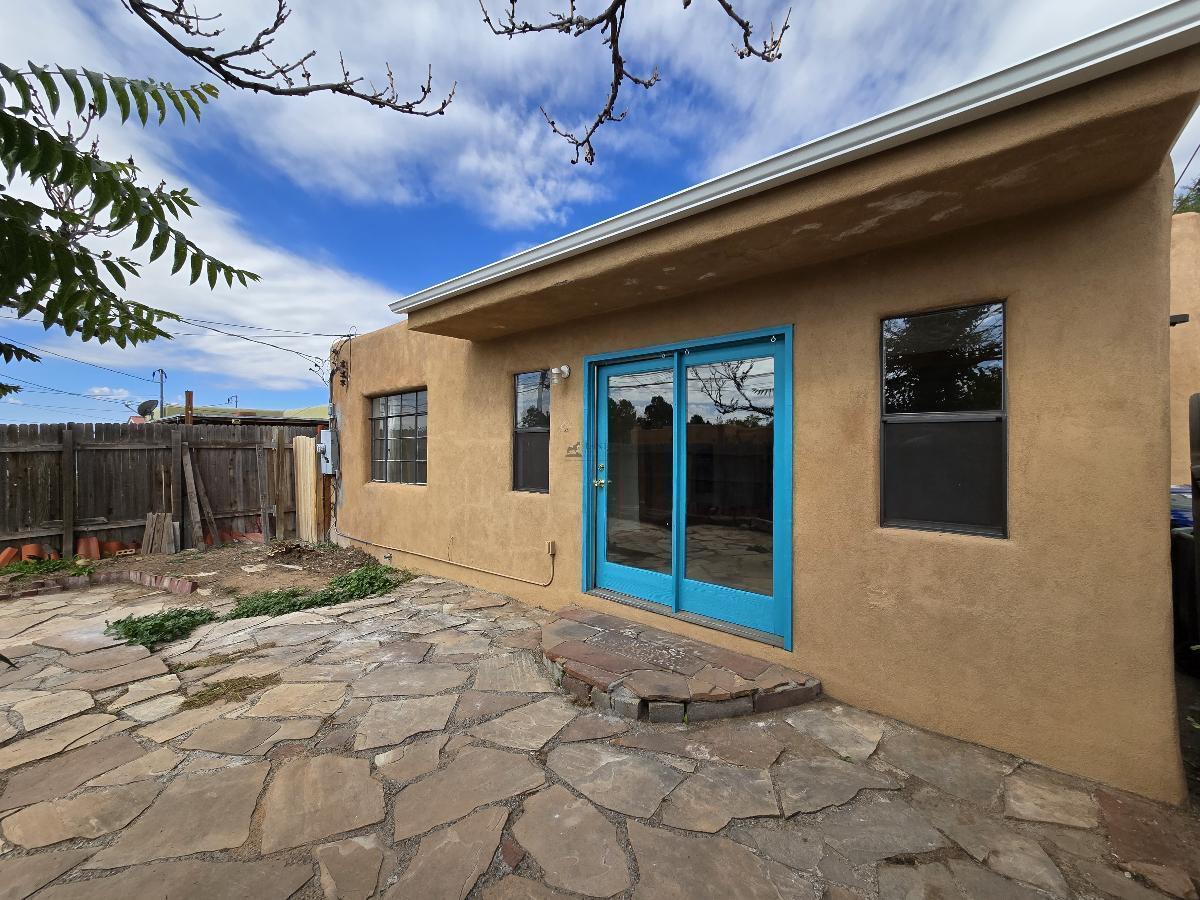 This 950 square foot duplex offers a comfortable living experience with a host of modern features. The home includes one bedroom and one newly remodeled bathroom, showcasing a spacious walk-in shower. Rich wood flooring enhances the living space, complemented by new flooring in both the kitchen and bedroom. The in-unit washer and dryer add practical convenience. Externally, a charming flagstone patio and an enclosed front yard provide inviting outdoor spaces. Basic utilities are included. Positioned centrally, it offers an easy commute to Los Alamos and is just a short drive from downtown Santa Fe. Suitable for professionals seeking a blend of comfort and convenience.