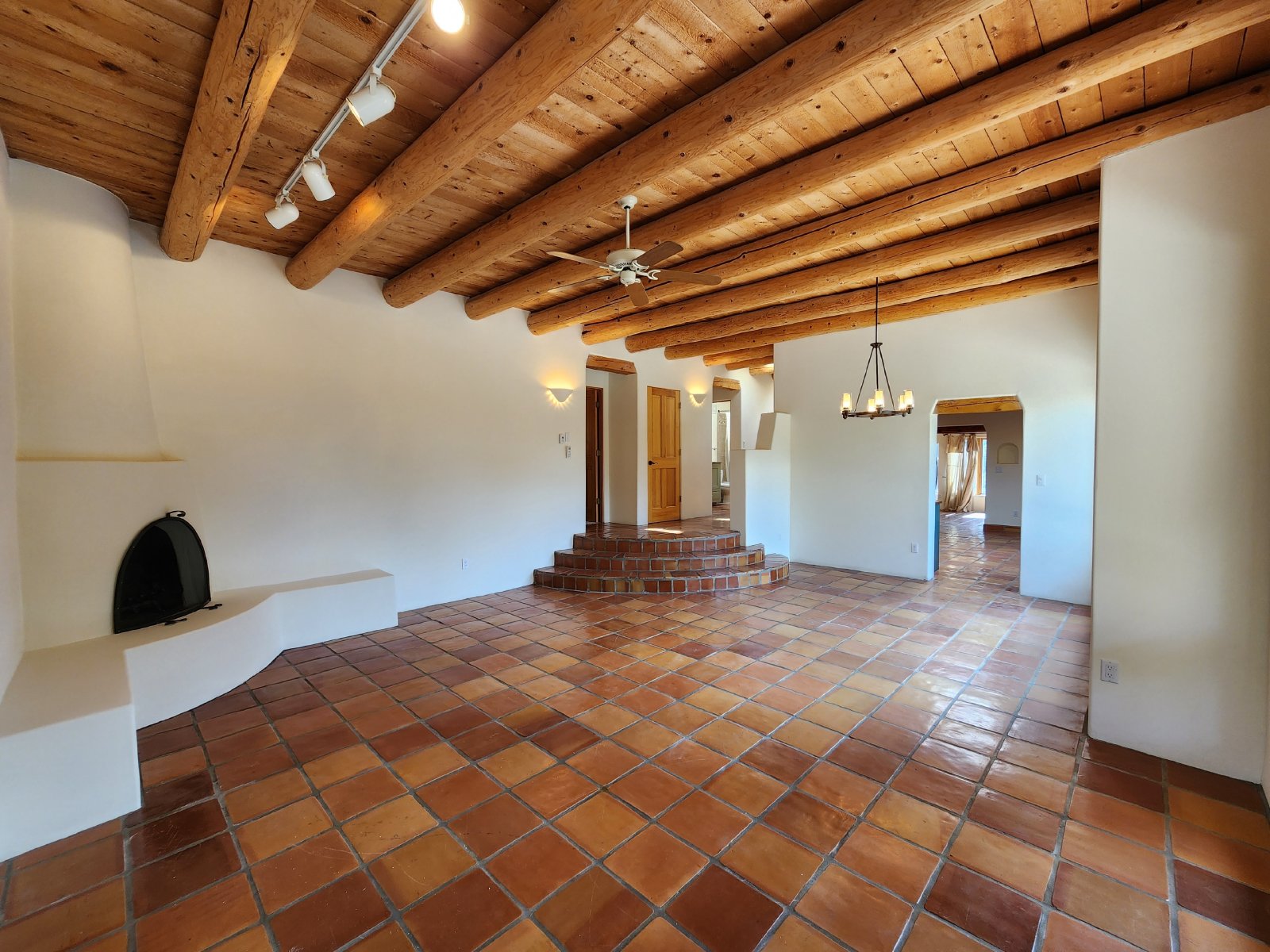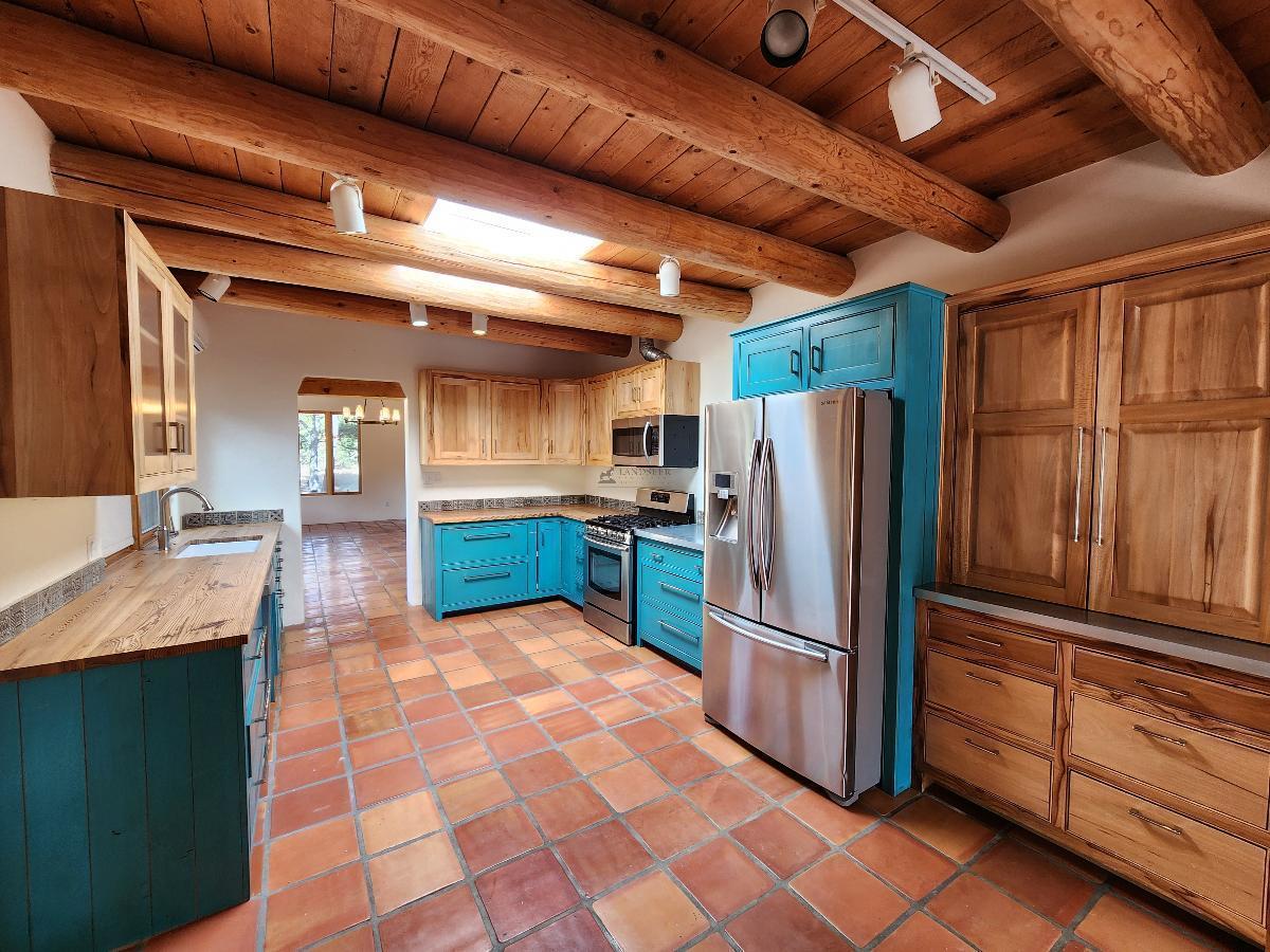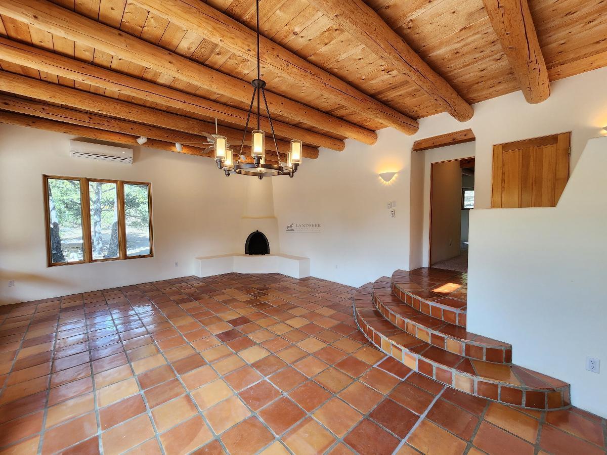 Spanning a spacious 2,500 square feet, this home features beautiful Saltillo tile flooring that enhances its Southwestern aesthetic, coupled with modern amenities like in-floor radiant heating, mini-split air-conditioning for optimal temperature control, and a cozy fireplace to gather around on chilly evenings.