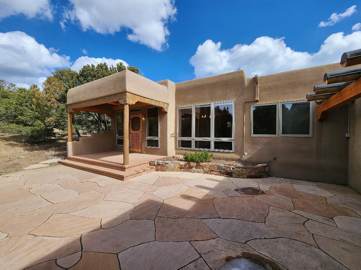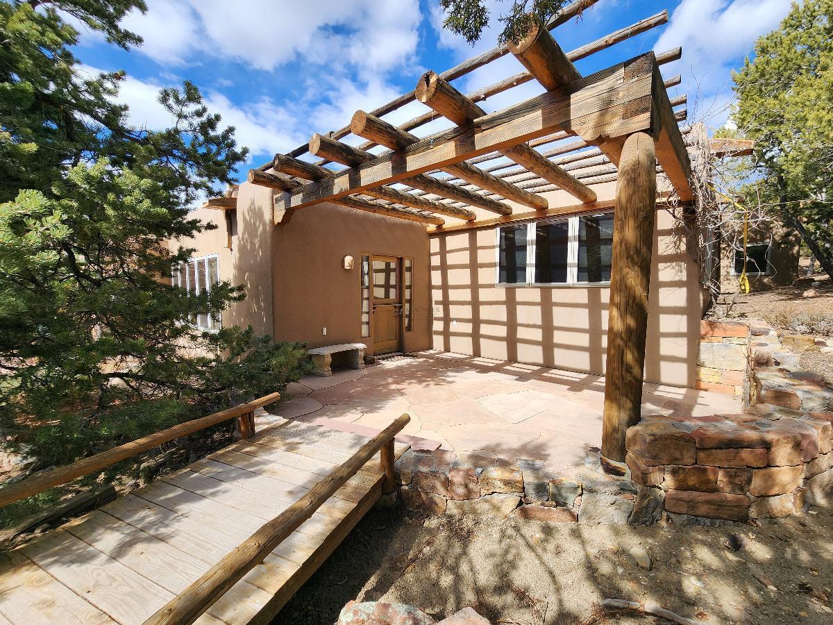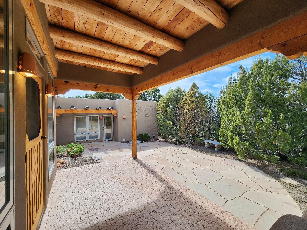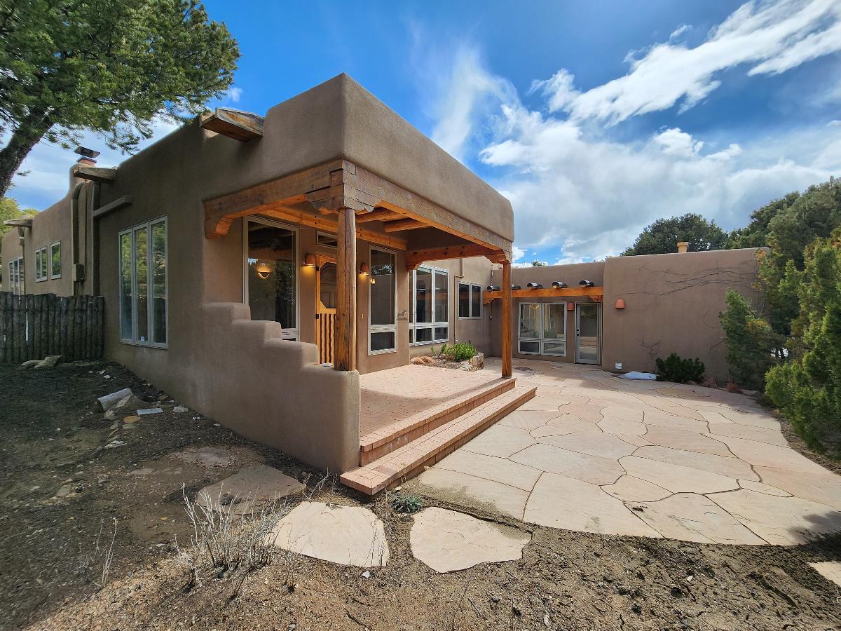 The outdoor space, which perfectly complements the private feel of the property, invites you to relax or entertain with ease amidst the picturesque backdrop of Santa Fe.